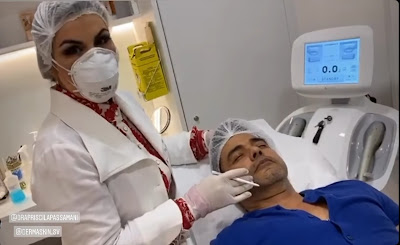 Em Vitória (ES), Zezé passou por uma sessão de estímulos ao colágeno, através de ultrassom macro, pelas mãos da doutora Priscila Passamani, que também realizou um procedimento na filha mais velha do cantor.